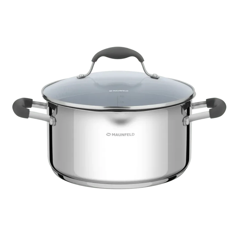 Кастрюля MAUNFELD LAURA MCS56S08GR 24 см, 5,6 л из нержавеющей стали со стеклянной крышкой