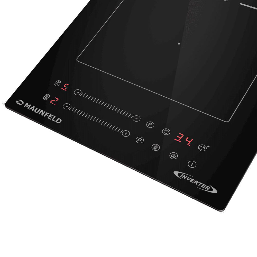 MAUNFELD CVI292S2BBK Inverter — идеальный выбор для тех, кто ценит стиль, технологии и экономию пространства. Эта узкая модель шириной всего 29 см оснащена двумя мощными индукционными зонами, инверторной системой управления и функцией Booster, обеспечивая быстрый нагрев и точный контроль температуры.