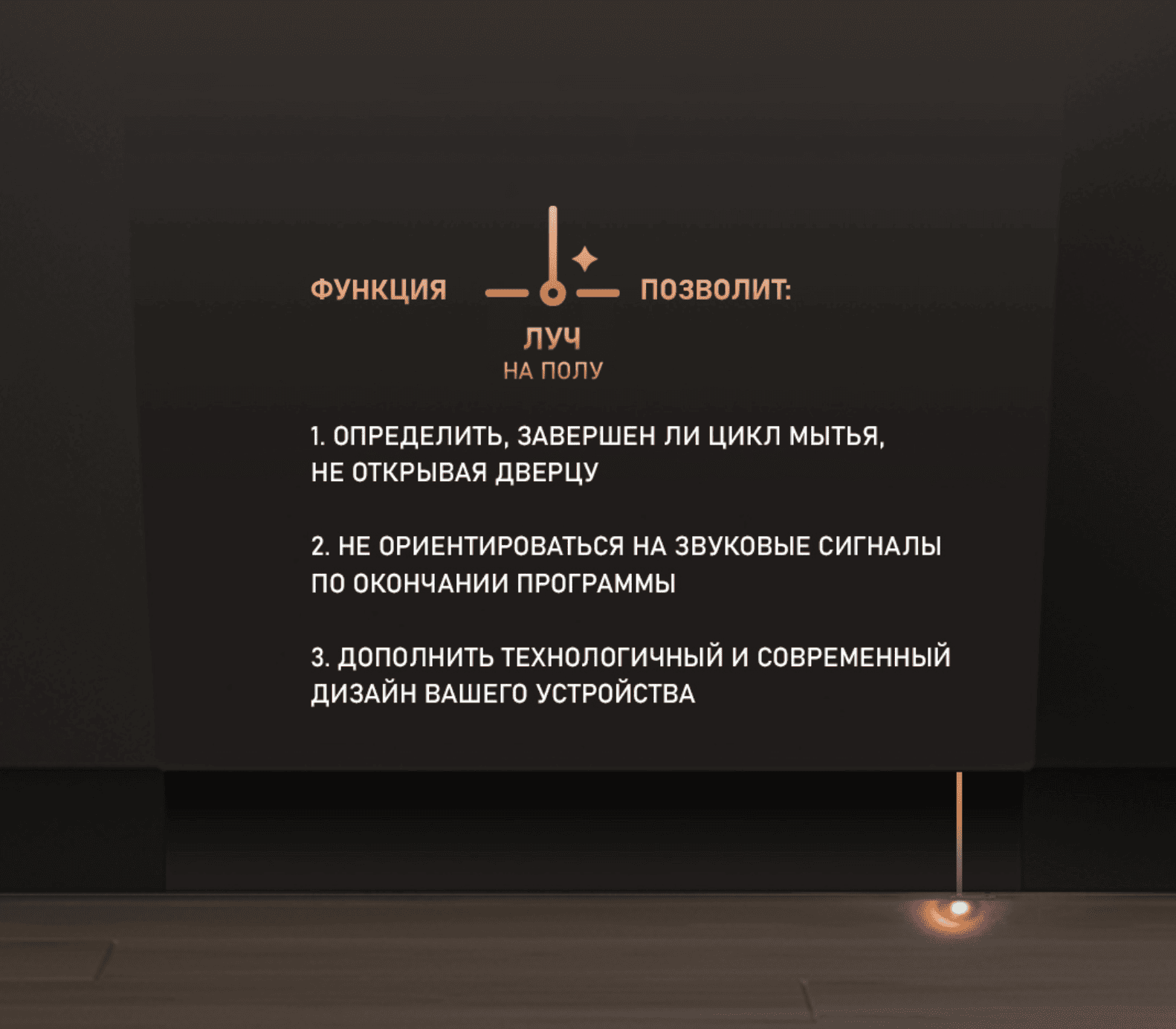 Автоматическое открывание дверцы AutoOpen, Функция "Луч на полу", Автопрограмма Blitz Wash, Инверторный двигатель |