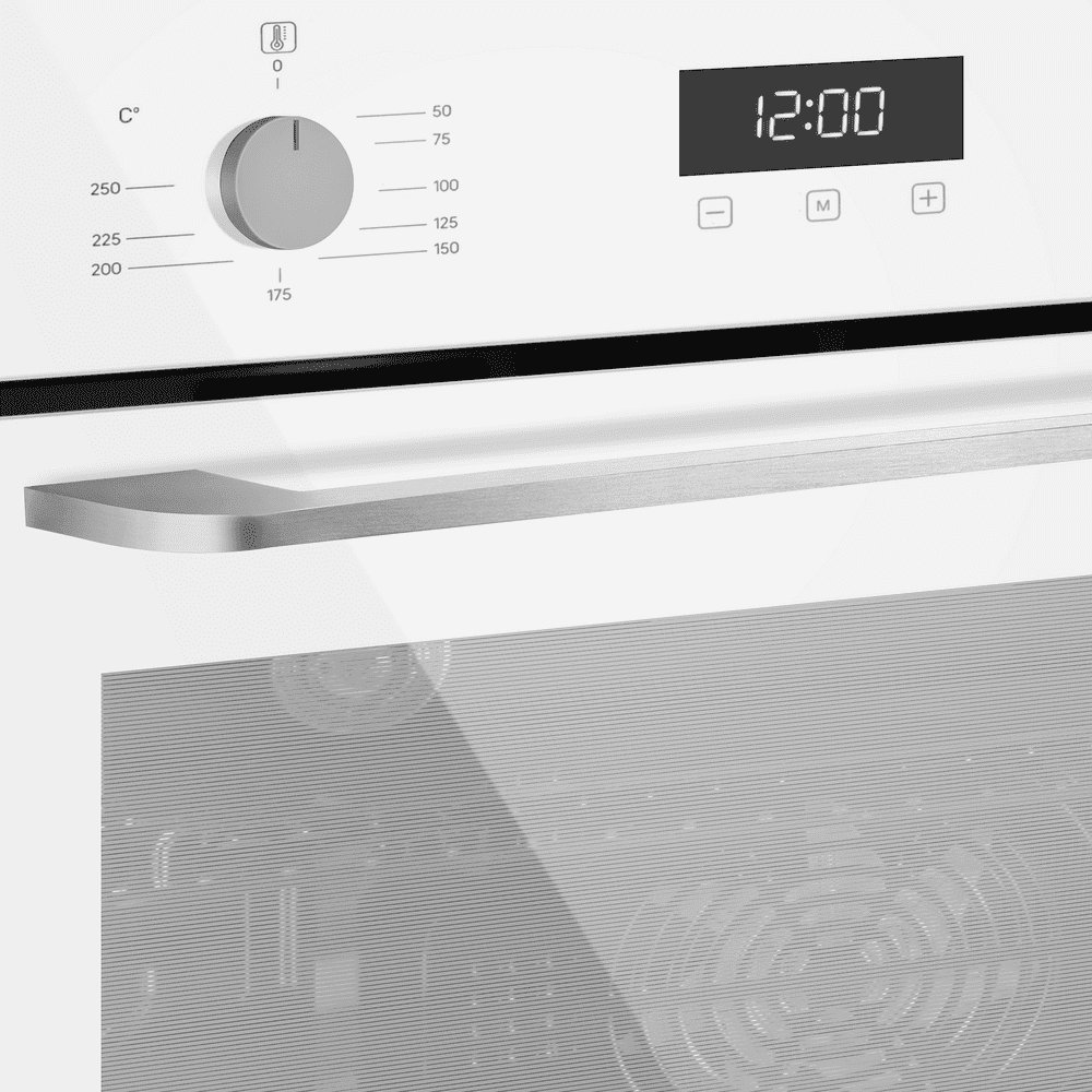 Большой объем 76 литров – позволяет готовить сразу несколько блюд на разных уровнях. ✅ 9 режимов работы – включая конвекцию, гриль, разморозку и режим пиццы для идеального результата. ✅ Трехслойное остекление – дверца остается холодной, обеспечивая безопасность при использовании. ✅ Телескопические направляющие – удобное извлечение противней без риска обжечься. ✅ Сенсорное управление – точное регулирование температуры и времени приготовления. ✅ Класс энергопотребления A+ – экономичное использование электроэнергии. ✅ Гидролизная очистка – упрощает уход за духовкой, удаляя загрязнения паром. ✅ Элегантный дизайн – белое стекло и стильные утапливаемые ручки PUSH PULL.
